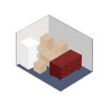 This unit is equivalent to an average size bedroom. This space will hold furnishing from a one or two-bedroom apartment with appliances.